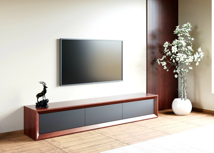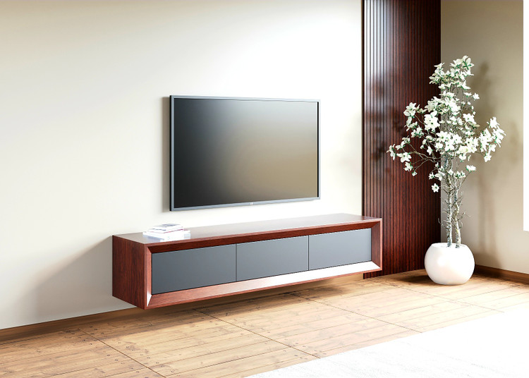 میز تلویزیون کارینو مدل آرتمیس در دو سایز ۱۸۰ و ۲۲۰، دارای ۳ کشو، قابلیت نصب بر روی دیوار و یا استفاده به صورت زمینی (با پایه و بدون پایه)
