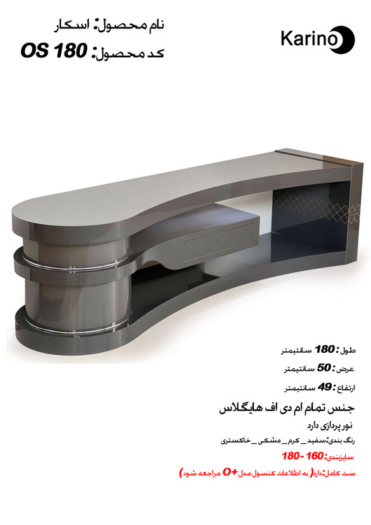 میز تلویزیون مدل اسکار برند کارینو سایز ۱۸۰ هایگلاس چراغ دار