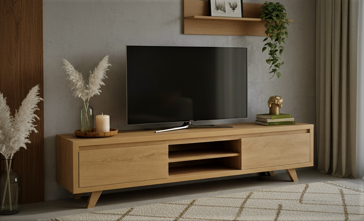میز تلویزیون کارینو مدل دیانا سایز ۱۸۰ ، دارای 2 کشو، قابلیت نصب بر روی دیوار و یا استفاده به صورت زمینی (با پایه و بدون پایه)