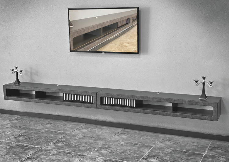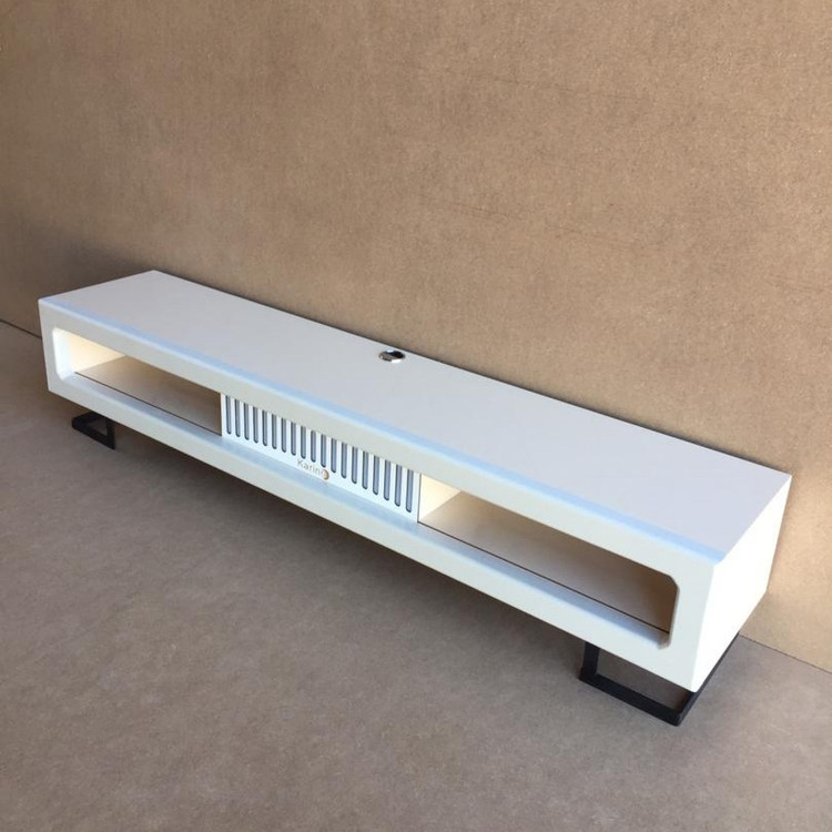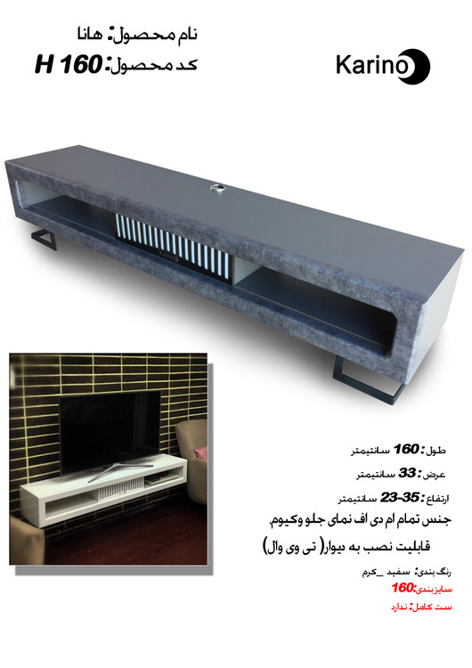 میز تلویزیون کارینو مدل هانا سایز ۱۶۰، نمای جلو وکیوم مابقی ام دی اف، قابلیت نصب به دیوار و یا استفاده به صورت پایه دار.