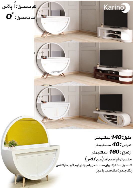 آینه کنسول +O ست میزهای نیم گرد برند کارینو